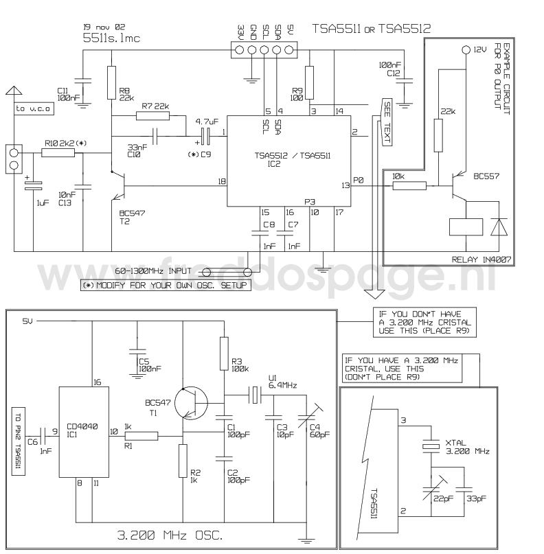 A következő problémával fordulnék hozzátok: már sokadik alkalommal építek PLL-t a közismert TSA5511-es ICvel. Mindig ugyan az a problémám: a hangolófeszültségem kiül 0,3 vagy 1,7 V-ra, és egyszerűen semmire sem reagál. Hiába állítom a frekit a mikrokontrolleren, hiába változtatom a a rezgőkörben az induktivitás értékét... semmi reakció a PLL részéről. És az az érdekes, hogy már kb. harmadik-negyed verziót építem meg, és mindegyikkel ugyan ez a helyzet. Volt már, hogy PIC16F84-essel és PIC16F628-assal próbáltam vezérelni (a progrit nem én írtam, nem értek hozzá), de teljesen ugyan azok a tünetek mindig. Ma épp a csatolt képeken szereplő áramkört építettem meg, és egy MC3362-es IC-t próbálnék vezérelni vele, amin még direkt kimenet is van a PLL részére... Megépítés után a szokásos hibajelenség volt, a hangolófeszültségem 1,7 V-on áll, majd ha megnyomom valamelyik freki-léptető gombot, akkor leesik 0,32 V-ra, és az idők végezetéig ül rajta ![]() Esetleg van valakinek valami ötlete? A hurokszűrőhöz kéne hozzányúlni esetleg, az okozhat ilyet ha nem megfelelő? Előre is köszönöm a hozzászólásokat.