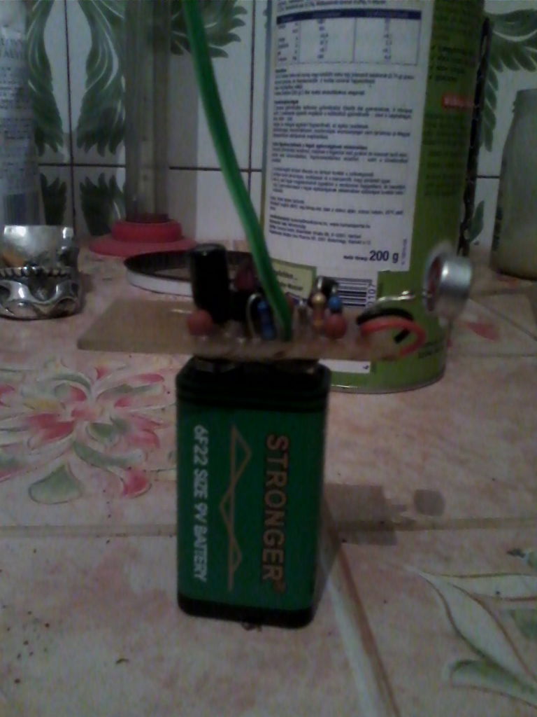 Nagyfrekvenciás, de ugyanakkor kis teljesítményű tranzisztort használj, és lehetőleg stabil 6-9V tápfesz.t.
