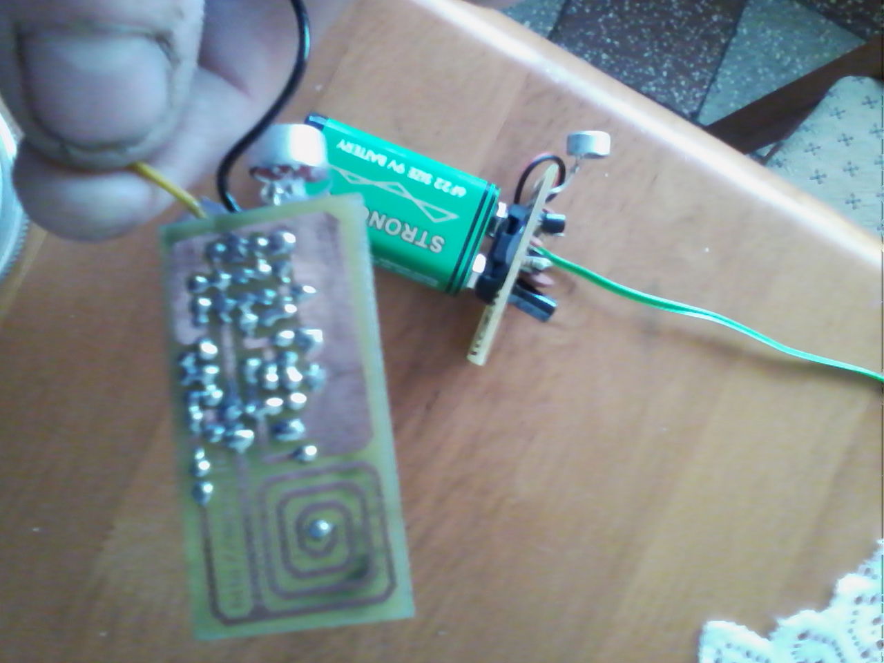 Szia!Én CX kondi helyére tettem egy220u 16v -os elektrolit kondit és müködik .Szép tisztán veszi a telóm rádiója is.meg persze a kazis magnójé is.Még csak kezdő vagyok de ez a kapcsolás működik .Igaz kisérleteztem vele egy fél napot mire sikerült.A hatótáv kb ötven méter sac/kb .A kertem végéből is vette a telefonom rádiója.95,4 mhz -en találta meg