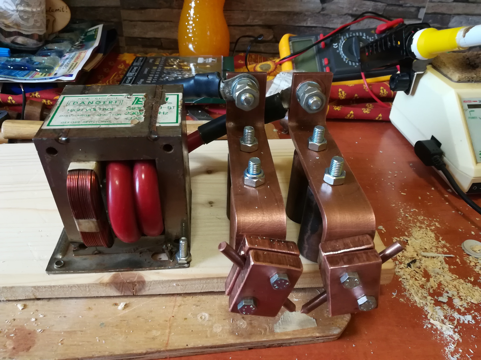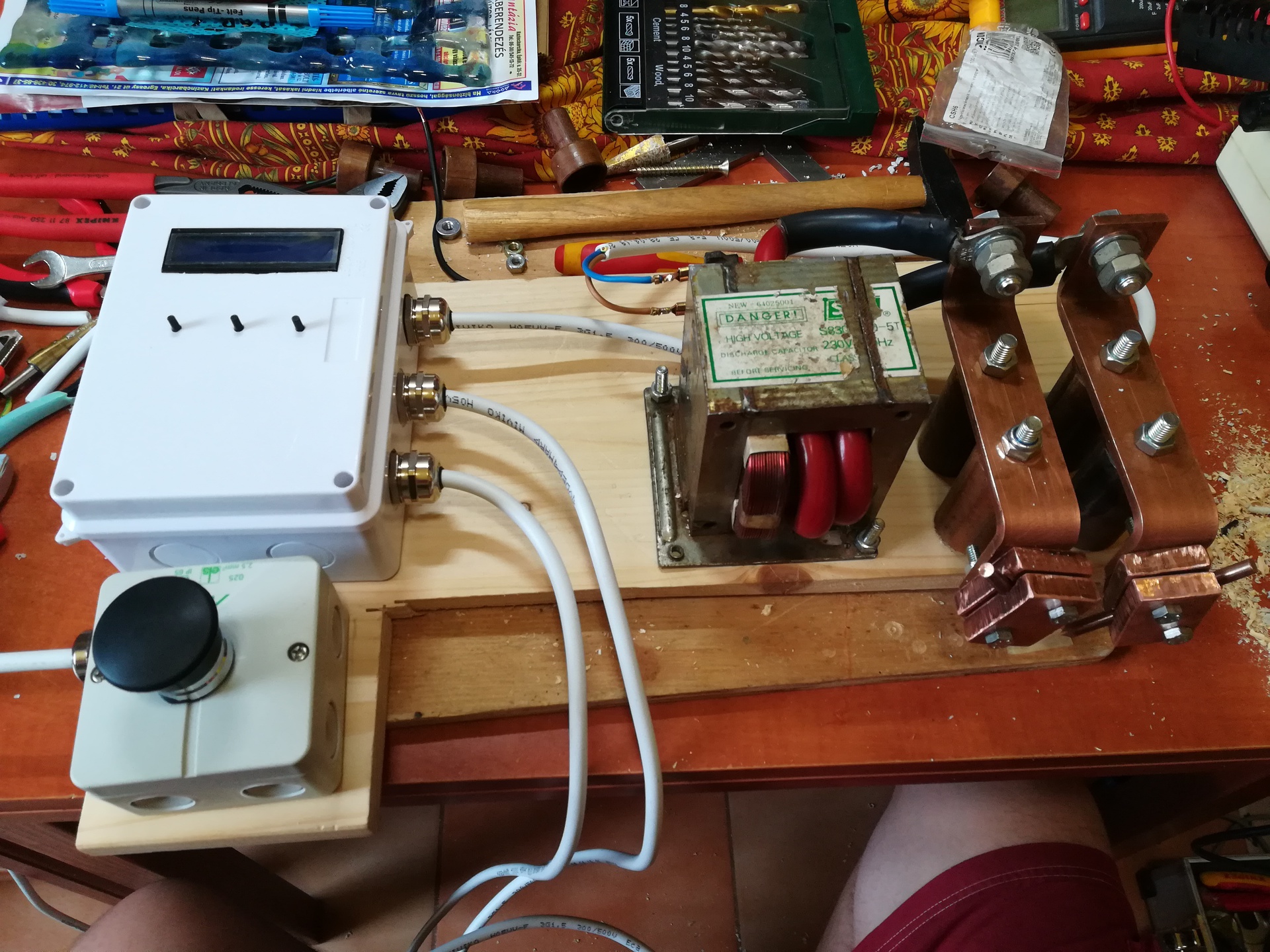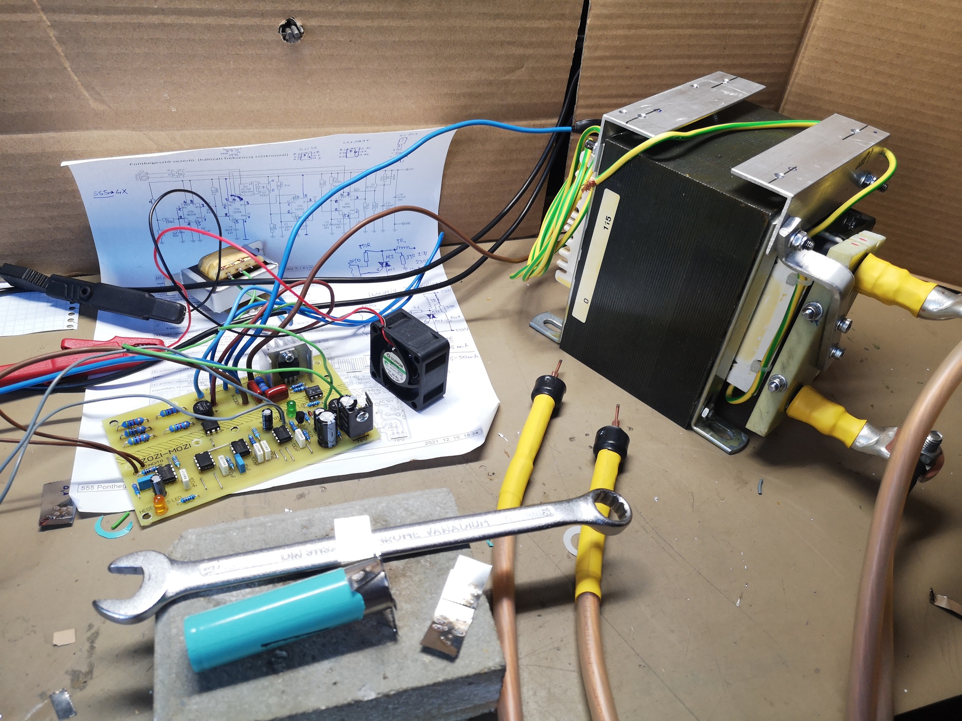 Éppen építek egy 1000VA-es trafóból épített akku cella ponthegesztőt. 70mm2-es vezeték a szekunder tekercs. Az elektronika szinkrozizál a hálózati frekvenciára. A hegesztési eredmények elég jók |