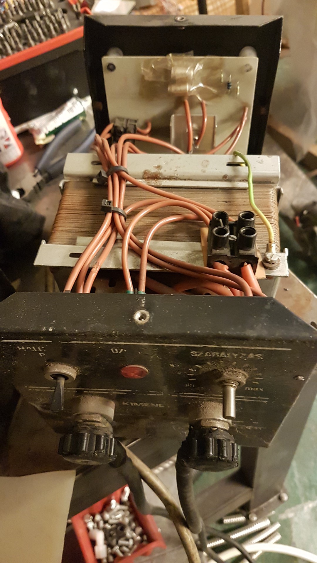 Lithium akku hegesztőt már egyszer 6 éve elkezdtem készíteni, de abba maradt. Egy kedves Barátomtól már jó régen kaptam ajándékba egy magyar gyártmányú szénrúddal használatos rézcső forrasztó készüléket. Illetve az utolsó 3 képen az általam készített trafó mikrohullámúból. Az ajándék trafó az egy triac vagy tirisztor segítségével állítható az árama feszültsége. 4-8 Volt között. A hálózat felőli oldalon rövid zárnál 2200W ot mértem. A saját gyártásúnál terheletlenül 2 Volt jön ki. Rövid zárnál le tudja nyomni a 16 Amperes megszakítót. Segítséget szeretnék kérni, hogy cella hegesztésre, melyik trafó lenne alkalmasabb? A PIC es egyszerű időzítőt már megírtam hozzá és egy 25A SSR en és egy termisztoron (20S250K) keresztül működne. Köszönöm az ötleteket és a segítséget.