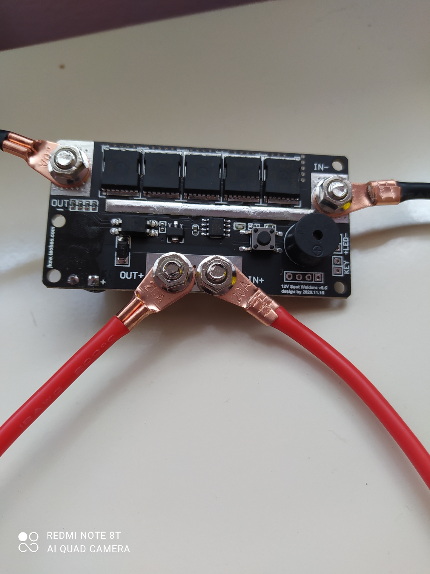 A 45Ah-val nekem sem ment, ugyanez a ponthegesztő viszont vígan dolgozott 100Ah-s akkuval. De nagyobb keresztmetszetű vezetékeket használtam, amilyen rövidet csak lehetett, a panelon (Nálad jobb oldali fénykép, középtájt, ami végigmegy, ónozott) 2*2,5mm2 vr. vezetékkel raktam fel, és kell lenni még egy ilyen "gyűjtőnek", azt is megerősítettem. Nekem másfajta van, a kijelzős, de a lényeg (5db, 300A FET), ugyanaz. Ugyhogy, ha hegeszteni akarok, akkor megyek "kölcsönbe". Az enyémet nekem adták, mert lerobbant róla az egyik FET, mert próbaképp egy vr. lemezen próbálták. Kínai reklamációban küldött másikat. Vettem FETet, megcsináltam... Üdv: StMiklos