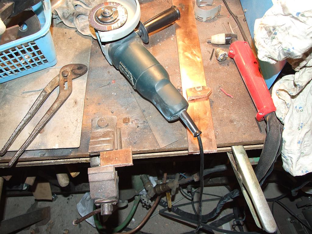 Az elektródákat keményforrasztással rögzítettem a saruhoz. Nem tudom, mennyire jó vezető a foszforozott rézpálca, de biztosan jobb, mint a vas.