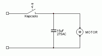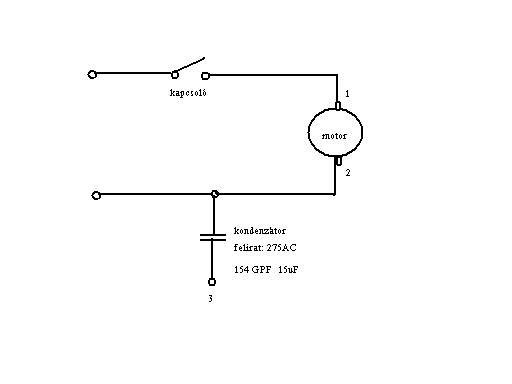 Ennyi a móricka ábra, nincs poti, szabályozó vagy bármi más. Ez egy tipikus, 5 e FT-os, egyszer használatos olcsóság. Számomra is a motorral való párhuzamos kötés a szimpatikus/logikus, de biztosra szerettem volna menni. Ja, a motor megy a kondi nélkül is, próbáltam, ezért nem értem, hogy mi a szerepe. A zajszűrő tűnik logikusnak. Na, este megforrasztom, és meglátjuk. Köszi! Majd osztom a pontokat!