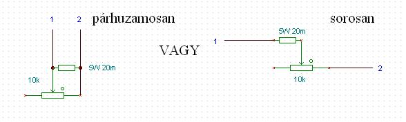 Nem találtam olyan témát, amibe feltehetném a kérdésemet, csak ez hasonlított egy kicsit. Az lenne a kérdés, hogy hogyan lehetne csinálni egy nagy teljesítményű potmétert, akár több wattosat is? Van egy ötletem, hogy egy pár wattos ellenállást és egy potmétert összekötök, de ezt hogy kellene? Sorosan, vagy párhuzamosan? Vagy mindegy?