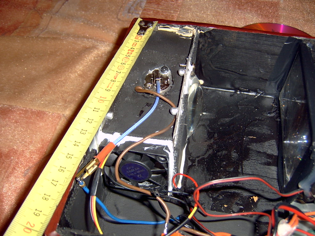 itt a doboz hátán a jobb alsó sarokba távozik a meleg levegő ennyi hűtés elég neki a venti 12v-os de egy 9v-os stabkoczka hajtsa
