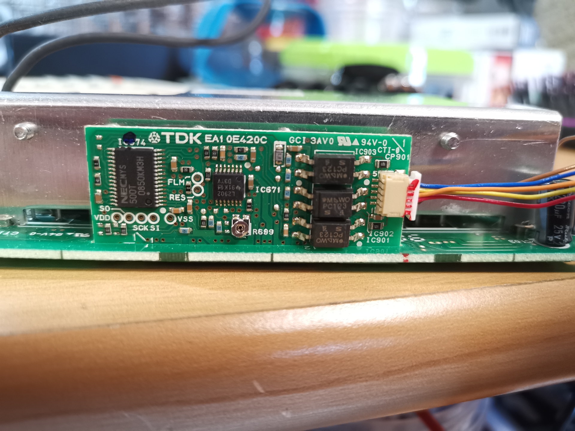 Most tartok ott, hogy kikaptam belőle a ballastot, és a szokásos rövidzáras módszerrel elméletileg sikerült átverni az alaplapot, legalább is azt hiszem. A probléma azzal van, hogy bekapcsolás után rögtön a POWER LED elkezd narancssárgán villogni, kiáll STAND-BY-ba, majd kikapcsol. Bevilágítva a lámpa helyén látszik, hogy a készülék képet ad, megjelenik a SANYO logo, felette pedig valami visszaszámlálás megy. A service manualban az szerepel, hogy ilyenkor úgy érzékeli, mintha a lámpa lehült volna -legalább is én ezt vettem ki. Van benne 3db ISP buszon kommunikáló TEMP sensor. Megpróbáltam a lámpáét elkezdeni felmelegíteni hőlégfúvóval, de nem jártam sikerrel -ugyan úgy kikapcsol. Esetleg van valakinek ötlete, hogy mi lehet? Van külön Lamp Replace LED, érdekes módon eddig sose azzal dobta el magát. A ballast felé menő jelekre érdekes módon azt írja, hogy CHO_RXD és CHO_TXD. Én ránéztem szkóppal ezekre a lábakra, nem láttam adatcsomagokat. A Service Manualban is csak alacsony és magas szintekről beszél ezeknél a kivezetéseknél. Próbáltam már az alaplap TX-ét az RX-ére visszavezetni egy tranzisztorral (hátha időzítés a probléma), de így sem jött össze. Van egy olyan érzésem, hogy nem a hackelésnél van a probléma. Inkább a TEMP sensorommal lehet valami? Nem sikerült rájönnöm, hogy vajon miért számol vissza? Még gondolkoztam azon is, hogy esetleg egy mikrovezérlőn keresztül kapcsolom alacsony szintre az alaplap bemenetét, ha megérkezett minden jel, és jelzem magamnak egy LED-del is, ha minden rendben.