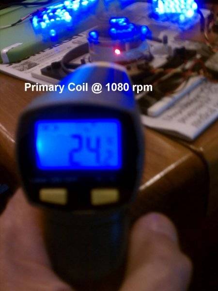I measured the current supplied by the 15 vdc regulated supply @ 430 madc, to the Base unit. This is total current. I measured current to LM2941 @ 380 madc. I calculate that 150 madc goes through the primary coil. I can believe this. Nothing gets hot.