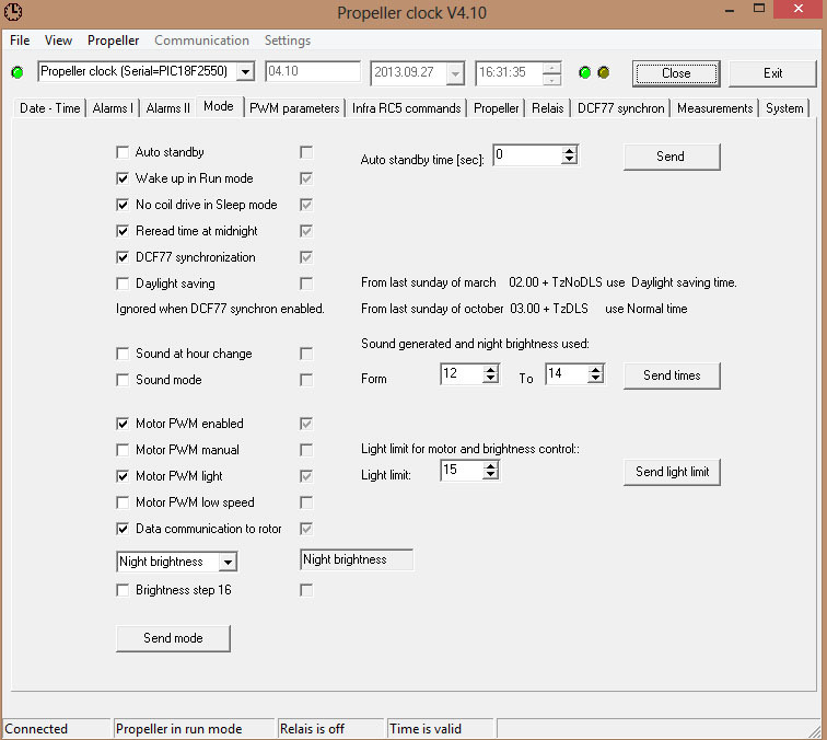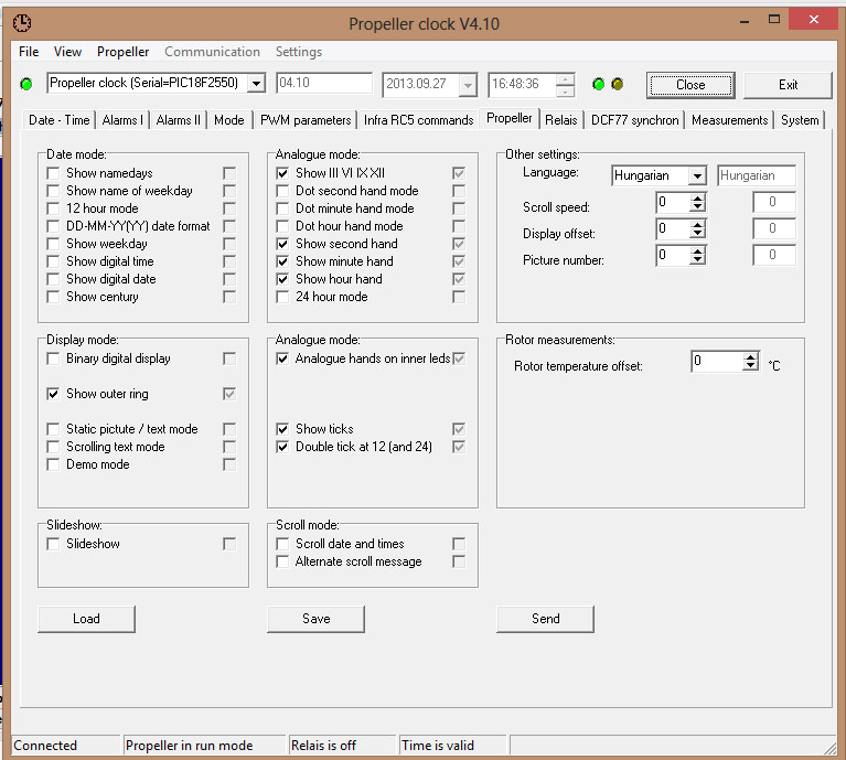 Most már helyén van pár dolog. Ha a programban változtatom a propeller fülön a dolgokat akkor ha leállítom és újra indítom a forgást akkor annak megfelelően változik a kijelző. csak éppen az óra és dátum kijelzés nem megy át