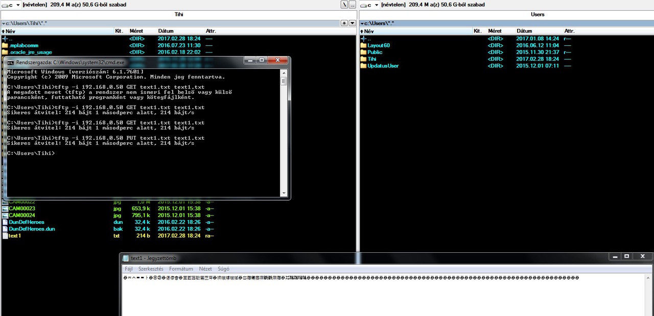 fontos a WINDOWS tűzfal alapból fogja a TFTP-t !!!!!!