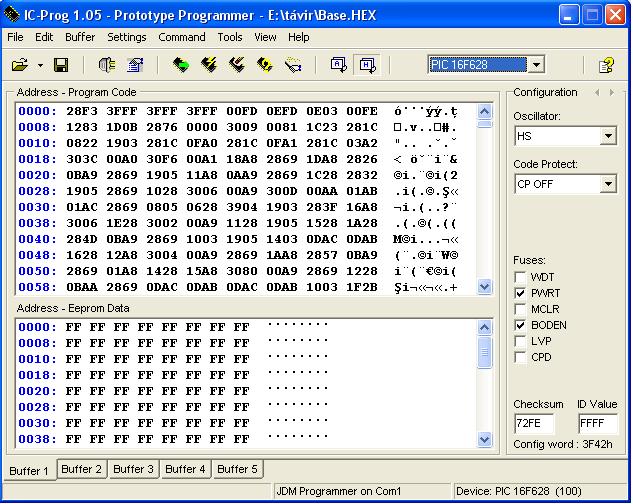 Megvizsgáltam és beégettem az eddig elküldött base.hex programokat, és mindegyik múködik egytöl-egyig. Valami talán az beégetésnél romlik el. Nálam az elején ez gyakori volt, mig nem kaptam egyik fórumtársamtól az IC-prog beállításához egy infót. Azóta egyetlen programot sem rontottam el, kiválóan müködnek. Elküldök az IC-prog álltalam is használt beállításához egy képet. Én igy égetem a PIC-keket. 1. Erase all 2. prog beolvasása 3. IC-prog beállítása 4. Égetés Próbáld meg ugyanigy, talán müködni fog. Írj, ha valami nem érthető a képen.