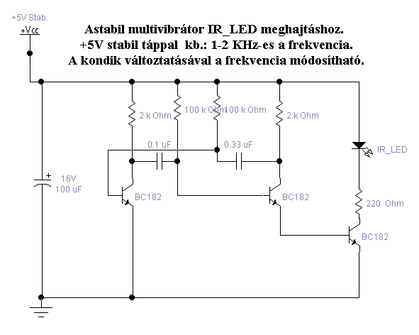 Sikerült megoldani. Mindegyik ledem világít, még a 3x3-as is. Végre valami jó. Holnap még beforrasztom a 30pF-es kondit párhuzamosan, csak azt nem tudom hogyan építsek 2KHz-s multivibrátort? Azt tudom hogy néz ki csak azt nem hogy mi alapján lesz 2 KHz-s. Tudnál nekem még ebben is segíteni? Köszönöm. Üdv red-colt!