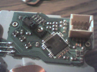 A képen a csati az IC-től jobbra fel található, melyen a legalsó lábat nem használom, a második (amelyik jobbra el van hajlítva) a tápfesz, harmadik a test, negyedik a szervo bemenet (100kOhm-mal tápfeszre kell kötni). Nálam vannak pufferkondik a panelen, ebből tudtam fórumos segítséggel kikövetkeztetni, hogy melyek a tápágak. A többi lábat pedig kisípoltattam, hogy merre mennek, és csak az egyik volt olyan, ami csak az IC-be vezetett, tehát elég nagy volt a valószínűsége, hogy az a szervó.
