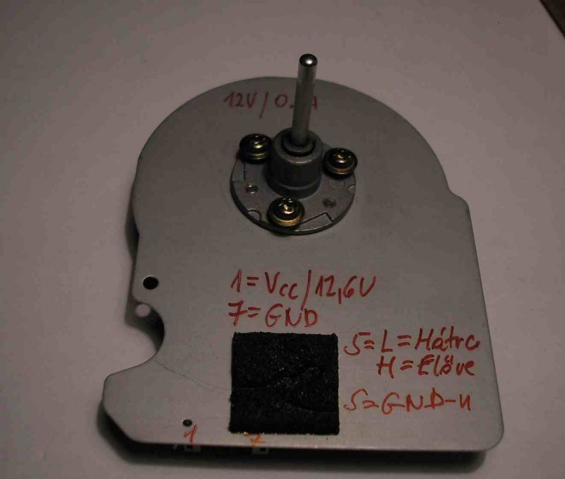 Kicsit még nézegettem a motorokat. Kezdem a nagyobbikkal mértem a kivezetéseket: 1. csak úgy belemegy az ic-be a 2. is hasonlóan. A 3. az ic-be és még össze-vissza megy. A 4. a GND ez biztos. Az 5. szintén az ic-be és még máshová is, de azt nem tudom követni. A 6. abba az érzékelőbe megy ami olyan mint egy magnó feje gondolom a mágnes pozícióját érzékeli. Még másfele is megy, de nem tudom követni mert rá van szegecselve a lemezre a nyák. A 7. a másik kivezetésébe megy annak a szenzórnak és ez is halad tovább. A 8. egy ellenálláson át bele megy az c-be. Erre gondoltam hátha ez lenne a + tápfesz, de ez csak tipp. A kisebbik motorról kevesebbet tudtam meg. Az első láb és a második között 3Kohm az ellenállás, a második és az 5. között 800 ohm. A 8. kivezetés és a 2. össze van kötve. A 2. pedig úgynéz ki hogy a GND. Így arra gondoltam ami érintkezik a 2. kivezetéssel annak már nem kell fesz mert onnan megkapja tehát az 1. 5. és 8. kivezetés kiesett. A 6. úgy néztem nem megy sehová. A 3. 4. 7. maradt. A 3. csak úgy bele megy az ic-be és a 7. is hasonlóan. A 4. is belemegy az ic-be és még halad össze-vissza. Hát tudom ez nem sok amit össze tudtam szedni, de mindkét motor nyákja le van szegecselve a lemezre és nincs sok kedven lefúrni a szegecseket. Tudsz valami tanácsot adni? Indúljak el ezek alapján eseleg jó nyomon járok, vagy valami gyanús???