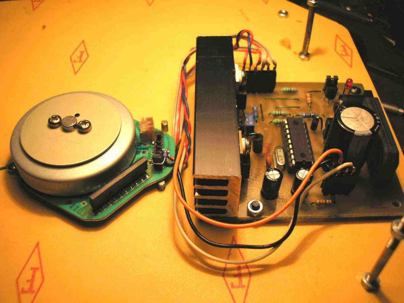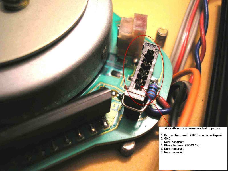 Ha a motor már szépen pörög, félsiker. A forgórész tekercseinél nem lesz gond, kösd sorba, és egy erős LED-et forrassz a két végére. (A LED-re vigyázz, mert ki lehet égetni ezzel! Nem baj ha van egy soros 100-200 Ohm előtte). Az álló tekercsek kivezetései nem egyeznek az enyémmel. Nálam csak 3 kivezetés jön ki alul, a két tekercs gyárilag sorbakötve, persze "forditva, szemben". Ezért leszereltem a fejdobot, és a beépitett nyáklemezen az egyik tekercs kivezetését átkötöttem belül. (Ez egy műtét volt!). Most annyit kel tenned, hogy leméred a kivezetéseket Ohm -osan, és megpróbálod rákötni a bázis á.k. meghajtó kimenetét egy 10-15 Ohm -os soros ellenálláson keresztül. Itt most próbálgatni kell. Szia.