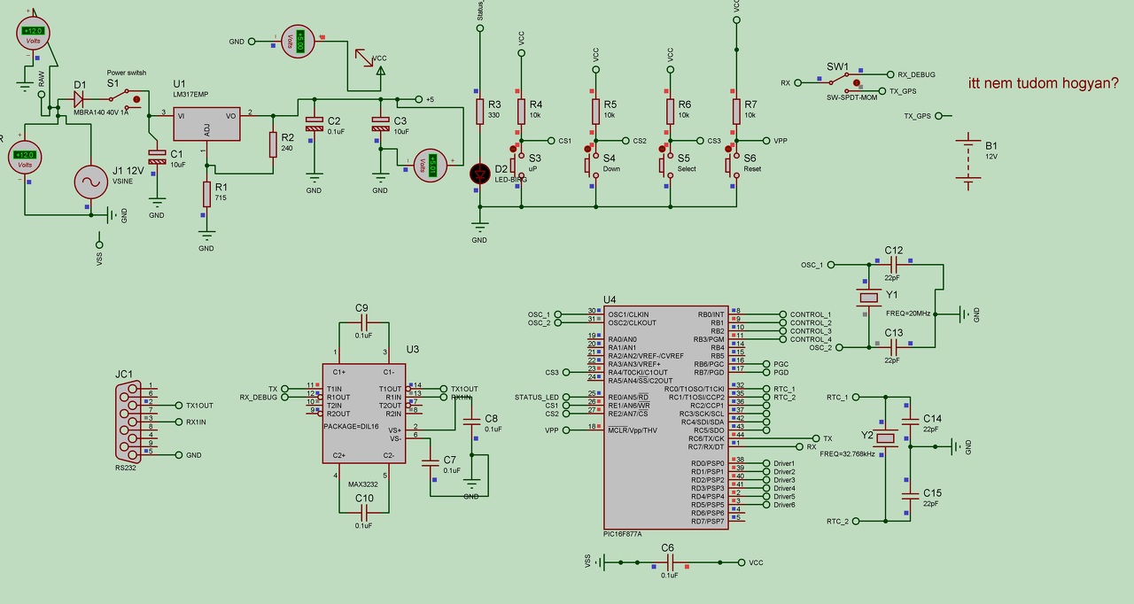 Akkor most komolyan , amit tudni kell. Adott egy pic16f877a ami egy óra.A csavar hogy gps jel alapján szinkronizálna.A sematik alapján a gps-el van a gond , mert nem találom az alkatrészek között.