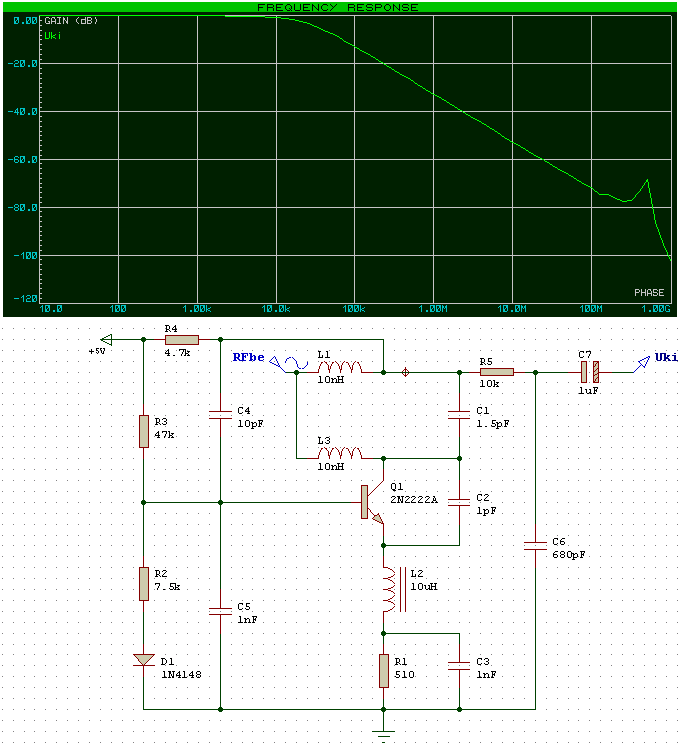 egy apró segítséget szeretnék kérni a jártasabb kollégáktól. Kíváncsiságból összeraktam egy vezeték nélküli csengő RF-részét (a kapcsolás valahonnan az oldalról van), de nem igazán tudom, hová tehetnék generátorjelet a frekvenciaátvitel szimulációjához. Az eredeti rajzon lévő légmagos tekercset felbontottam két soros induktivitásra, és a közös pontjukra tettem a referenciát (RFbe), de ahogy elnézem a kapott diagramot, nem tűnik a legjobbnak ez a megoldás. Van "bevált módszer", vagy netán ökölszabály arra vonatkozóan, hogyan kell a jelgenerátor becsatolását megoldani? Ha nem kifejezetten VSM, az is érdekel, hátha átültethető.