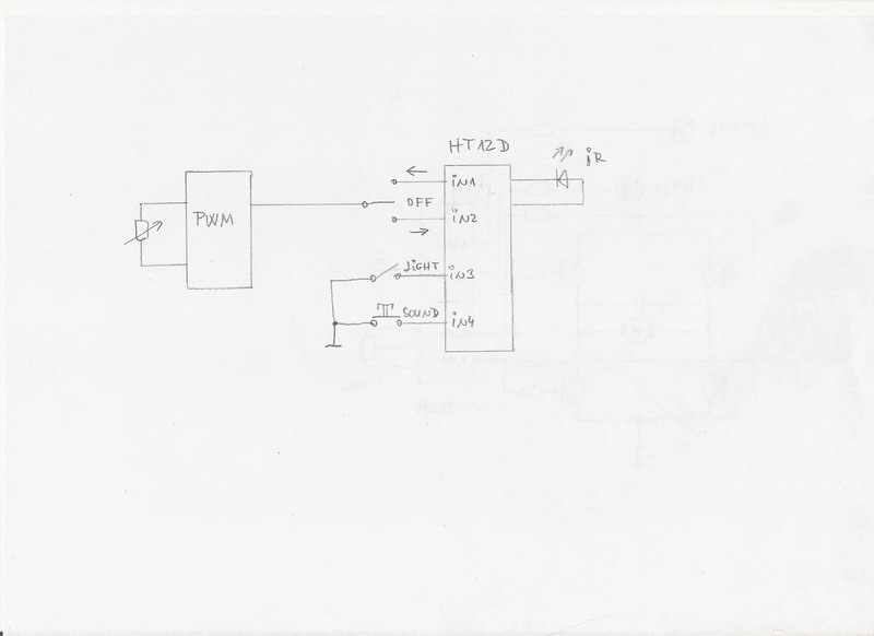 Találtam egy kapcsolást bár ez nem PIC-es de ha működik akkor nagyon hasznos lehet! Tulajdonképpen csak enkóder és dekóder de a többire már sok megoldás lehetséges. 6 csatornát tud kezelni annyi hogy servo motorokat de ha sima dc motor kell akkor csak egy H híd és megy is. Szóljatok ha hülyeséget írtam. Jólenne ha feléledne a téma mert érdekelne más véleménye is erről.