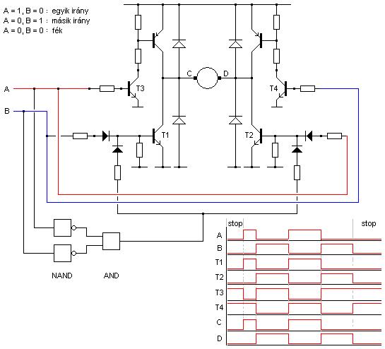 A rajz csak elvi, úgyhogy azt raksz bele félvezetőt, ami passzol a motorodhoz, a fékhez is megfelelő teljesítményű áramörök kellenek ( logika ), vagy a tranyók helyett FET-ek.