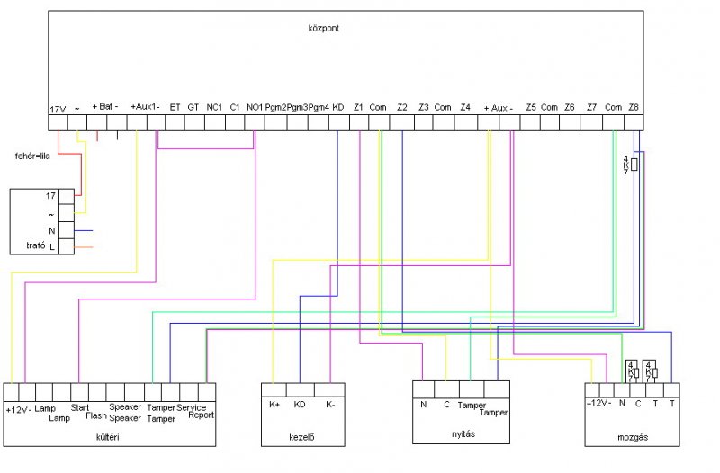 A Decibelle az elég megbízható és stabil, vagy a Bentel régebbi típusait, kinézetre hasonlít a Signalhoz, de más az elektronika benne. Ha adsz egy pontos leírást, hogy mit hogy szeretnél megcsinálom neked a rajzot