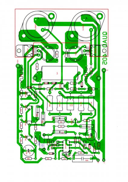 Hogyha helyes értékű ellenállást forrasztasz be, akkor azon mindössze 5 mV feszültséget tudsz majd mérni (nem pedig 9V-ot). A kimeneten végre 0V lesz. Visszatérve az IC 5,8 lábaira kötött kompenzációs alkatrészekre: nem sok vizet zavarnak. Csatolok egy képet a quadomról.
