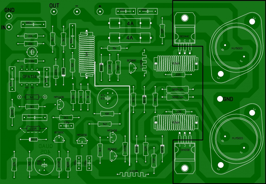 Üdvözlet mindenkinek.A mai estét rászántam a panelre.Átnéztem hatvanhatodik alkalommal,ellenőriztem,hogy van-e forrasztási hiba,kiforrasztottam a diódákat,kimértem,visszaforrasztottam,ellenőriztem,hogy jól vannak-e beültetve.. Adtam neki tápot.Az su-k eltávolítása után szintén megvolt még a + oldali áramfelvétel,a tápágakba bekötött izzó bizonyította.A tápfeszültség - oldalon 37.3 volt , +oldalon 3.2 volt . Eltávolítottam a bd242c meghajtókat is,akkor már a tápfeszültség - oldalon 47.5 volt és + oldalon 31.1 volt. A bd242 eltávolítása előtt mértem itt ott véletlenszerűen,az összes bd560 lábán tudtam mérni 1.5 és 3.45 voltot a nullponthoz képest,az bc 182 szintén. A műveleti erősítőnél találtam +15 voltot, és - 5.2 voltot a nullponthoz képest.Szóval a szerény,és tudatlan agyam azt mondja nekem,hogy ezek után a mérések után ez a panel egy rejtett anomáliát tartalmaz,és azért került fel vaterára,és azért nem kaptam mellé trafót,ha véletlen megcsinálnám,akkor se tudjak reklamálni,és lehessen rám tolni,hogy szakértelem hiányának eredményeképpen ez lett,ill az eladónál még működött. Szóval ennyi..
