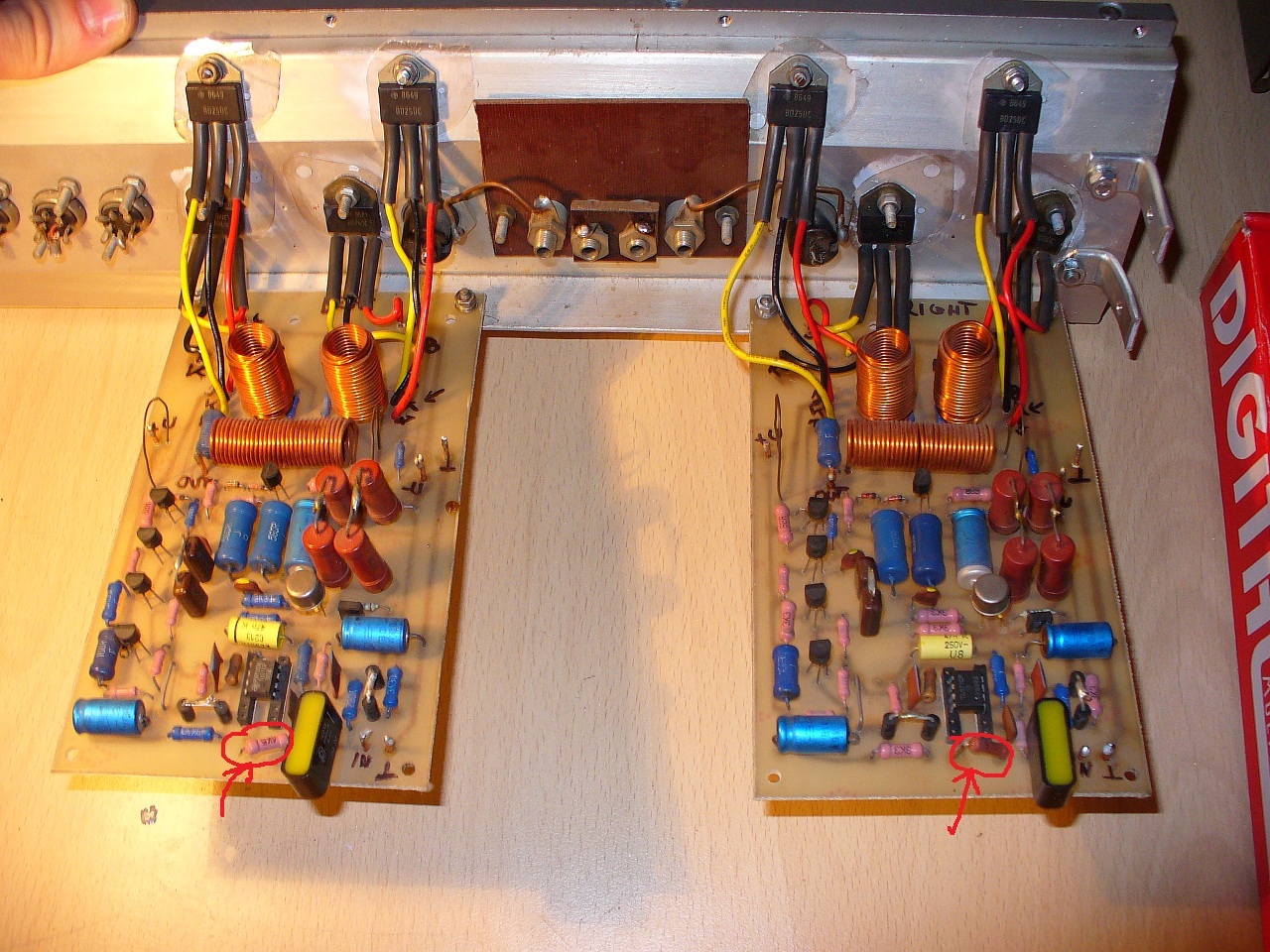 Üdvözlet mindenkinek!Egy kis szakértői véleményre lenne szükségem!Hozzám kerülte egy régebben épített Quad 405-ős, és úgy döntöttem hogy kicsit "felújítom" átkábelezem meg leárnyékolom a trafókat mert elég zajos ,de működik!Na már most "szemet szúrt " hogy mindkét panelon van egy 1,5 K-os ellenállás ami csak félig van beforrasztva,valószínűleg szándékosan,csak nem tudom milyen apropóból!?A képeken bejelöltem melyik és hogy hova csatlakozna a kiforrasztott fele!Szerintetek miért van kiiktatva?Előre is köszi a válaszokat!
