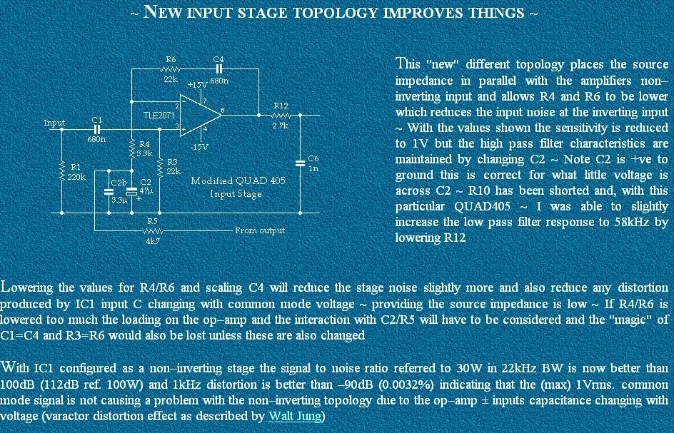 Szép ez a Keith-Snooke modifikáció, csak az a baj vele, hogy aki csinálta nem érti a Quad működését. Ennél fogva a modifikált, immár nem invertáló kapcsolás már 50Hz-től vágja a mélyeket, mert kutya kötelessége, ha a 47nF-ot 680nF-ra cseréljük.