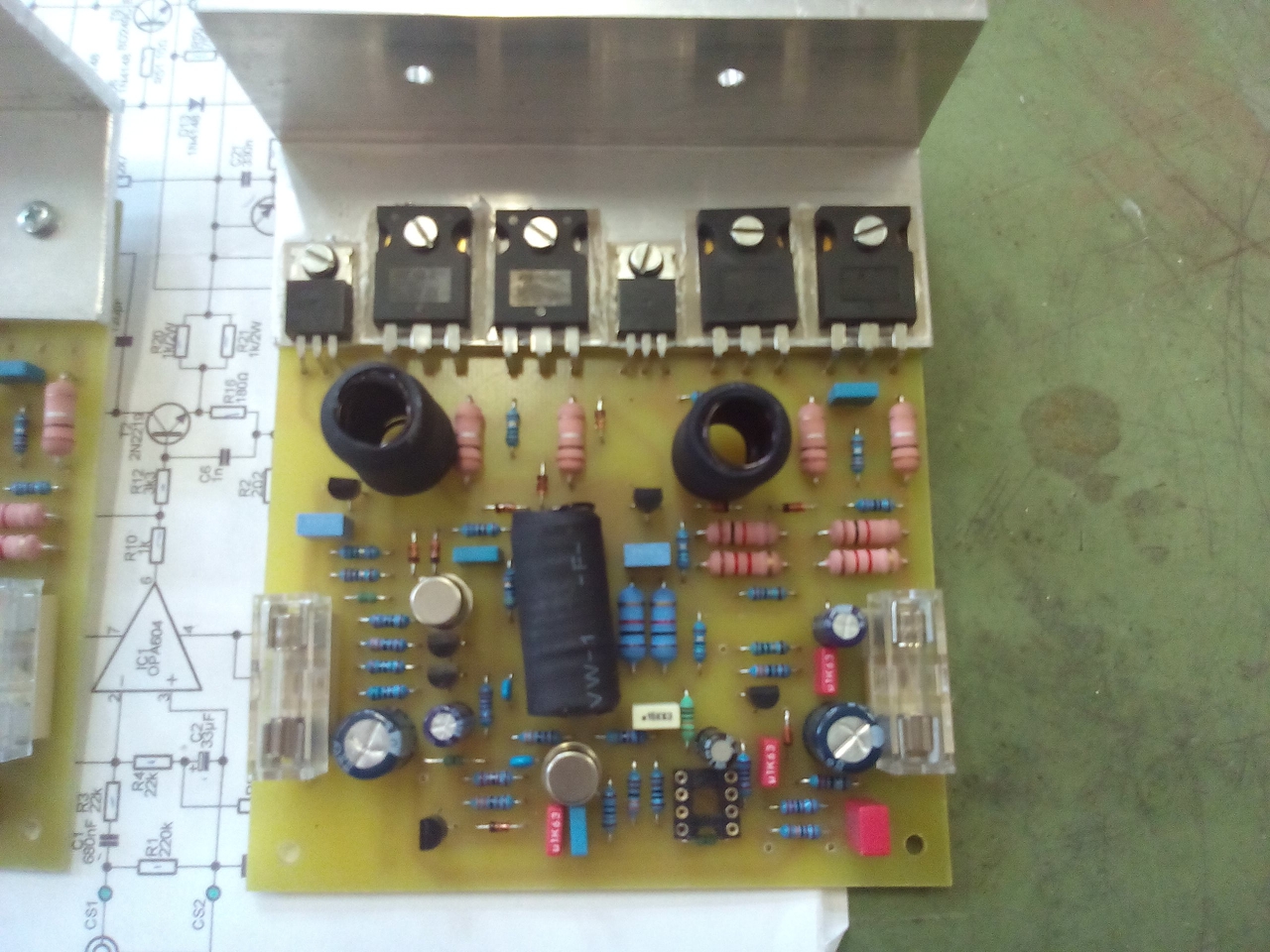 Egy észrevétel: az egyik 560 ohmos teljesítmény ellenállás el van égve (az 1w-os)
