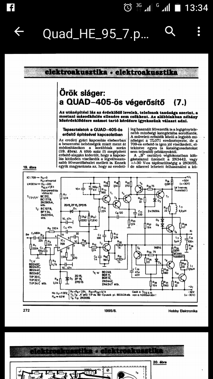 Tanácsra lenne szükségem a kollektív tudattól .Építettem egy quadot, sztereo kivitelben, viszont a hiba amit produkál, igencsak fura. Ha a maximum hangerö fele vezérlem, akkor egy kis idő után az alsó védőtranyót a bc212-est ellövi és torzzá válik a jel alsó része. Tehát, ha szinuszt adok neki, akkor a jel alsó csúcsa letörik és úgy néz ki, mint amikor a védelem belép. A furcsa az, hogy ezt csak a jobb oldallal műveli, pedig alkatrészre is szimmetrikus a két oldal. Gondoltam, hogy a bc212 nem igen bírja a +- 40V-os tápot, holnap kicserélem bc640-re, de addig is hátha valaki találkozott már ilye problémával, hogy csak az alsó védőtranzisztort lövi az erősítö. Van rá valami módosítás, vagy elézhető alkatrész. A kapcsolás a legelterjedtebb alalpkapcsolás ami a HE újságban jelent meg, a végtranyók BD-k. Köszönöm a tanácsokat, segítséget!