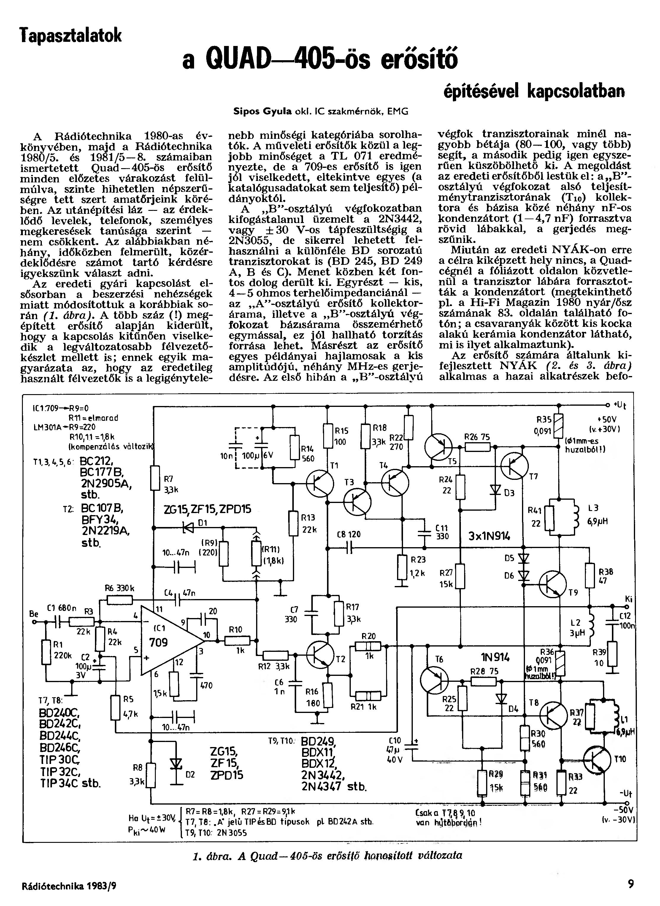 Szinte minden erősítő megépíthető 4, 6, 8, vagy 16 Ohm-ra is. Azon múlik a dolog, hogy a visszacsatolás, a munkapontok és a tápfeszültség hogyan van belőve. Építettem már Quad405-öt aktív Sub ládába 4Ohm -os hangszóróhoz. Probléma nem is volt vele soha.