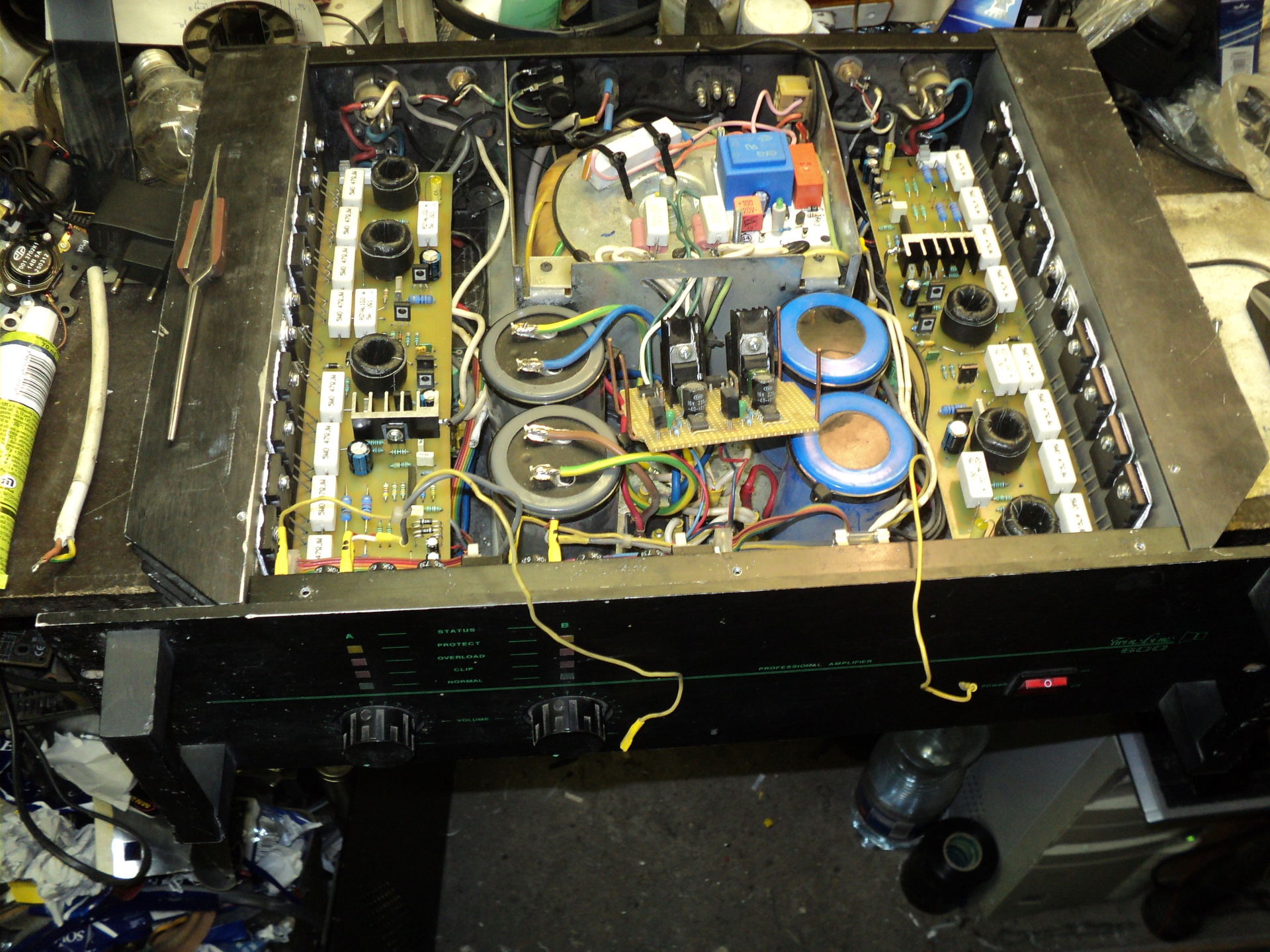 Nos... Mint írtam, KÍSÉRLETI JELLEGGEL. Föntebb kollegák letaglalták: opa tápfesz kevés, valami NJM+-18V-ról határon ment, A osztály munka ellenállásai (4db. 1K/3W-os 200!!! fok fölött sült) , A "B" osztály csak azért nem durrant, (8*2SC5200) mert egy kisebb szélgép 40 fok alatt tartotta a hűtőbordát) túláramvédelem benne sem volt a panelokban. Kb. 1 óra nyögetés után az "A" osztály el is durrant benne. Quad véleményem szerint 4 ohmon 250W és kész. A fenti képen lévő állapotban egy gyári TWINLINE 600-ba lettek beépítve, +-60V-ról mennek stabilan. Maga a kísérlet vagy 10 éve történt, papír alapú tervezéssel, dokument semmi. Ami rémlik, hogy a BC tranyók BF és MJE típusokra lettek kiváltva, a műveleti pedig NJM XXXX nem emlékszem, +-18V a határfeszültsége. Ha ettől több "kakaó" kell, felejtős a Quad, én kipróbáltam, elég sokba került a játék. Van itt a fórumon is sok bevált kapcsolás nagyobb teljesítményre. 400W már sok.