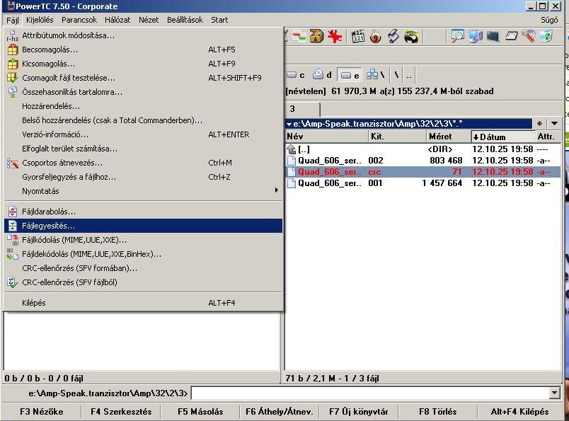 Tc , -kijelölöd csak a crc fájlt ,majd a fájl menüben a fájlegyesítés.