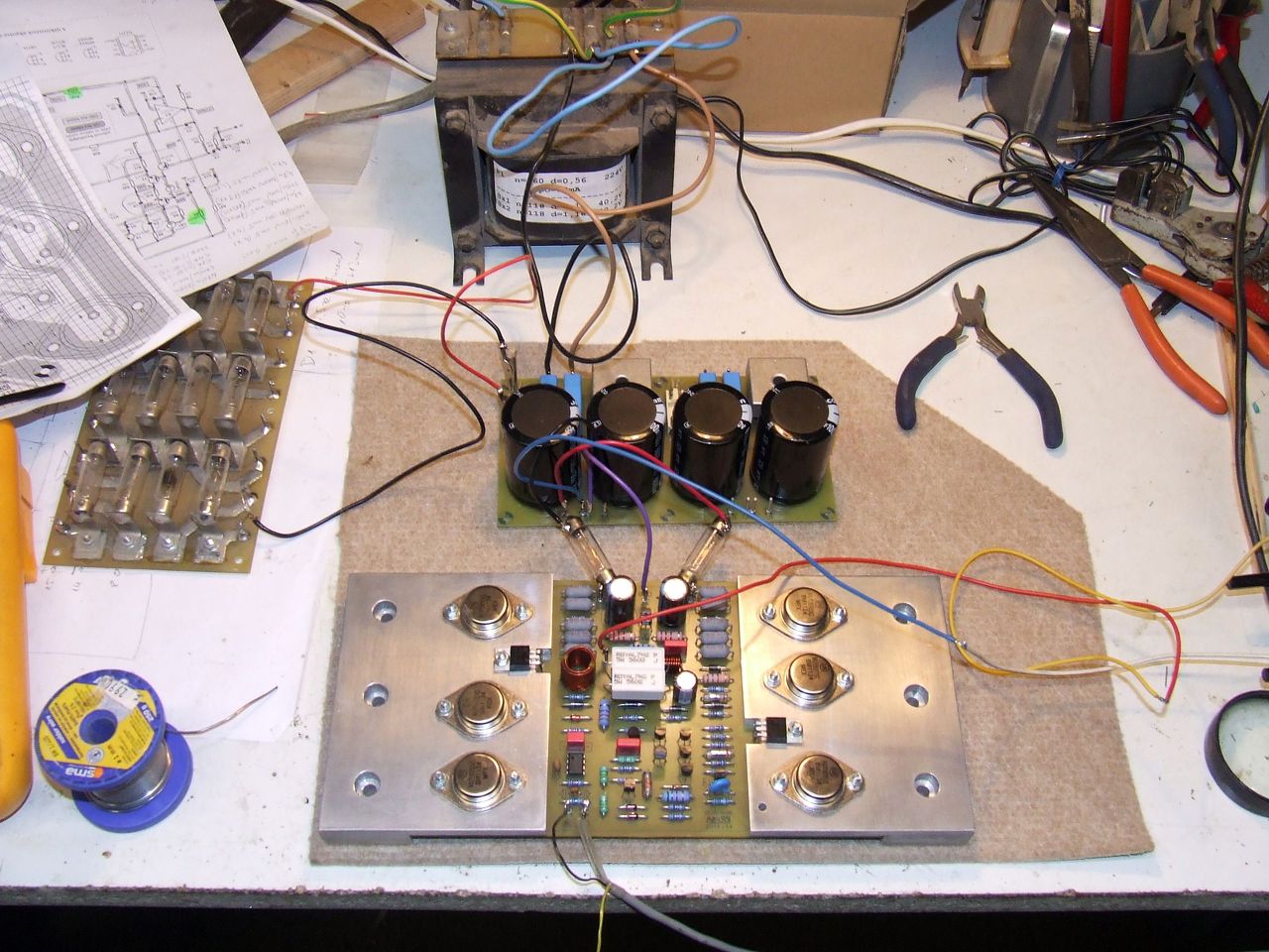 Már az elejétől van egy konkrét elképzelésem, ami itt nagyobb jelentőséggel bír mint általában, mert ez az erősítő a szokottnál több mechanikai részt kíván. Éppen azért ilyen, mert próbáltam elkerülni a túlzottan bonyolult hűtési megoldásokat. (Az is igaz, hogy nagyon komoly technikai segítséget kapok Cirokl-tól.)