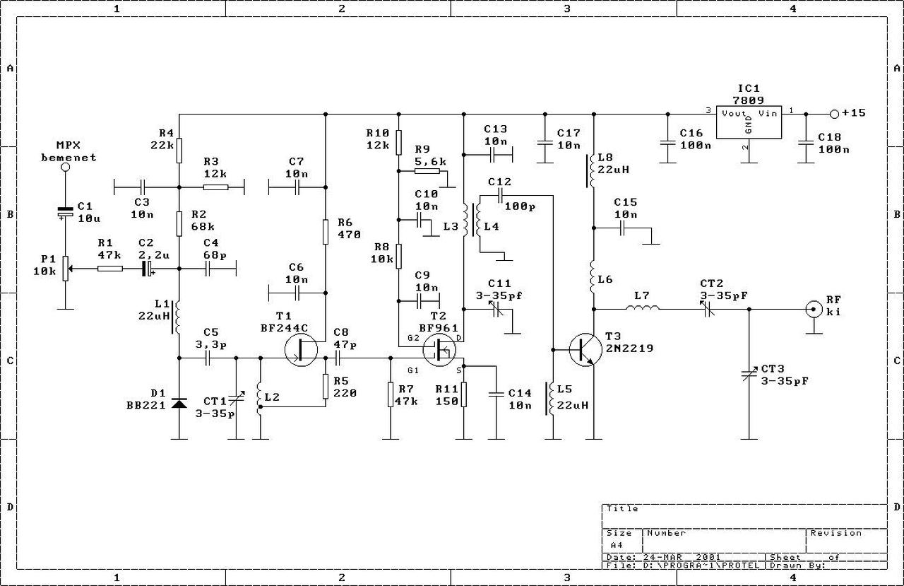 A csatolt képen látható kapcsolás ezt a feltételt nem teljesíti, a kimeneti teljesítménye sem kevés, akár 500 mW is lehet. Jó antennára kötve jelentős zavart okozhat. A kimeneti szűrő sem látszik.
