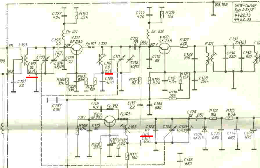A C131 -et nem húztad alá. Azt is cserélni kell, mert a sávszélesség nagyobb a 75 kHz löket miatt, az OIRT -ben ez csak 50 kHz volt.