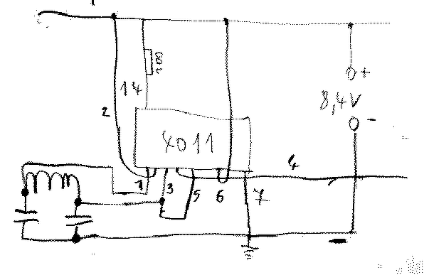 Építettem egy lc oszcillátort a 4011 ic vel. Egy kapu oszcillál, egy másik négyszögesít.