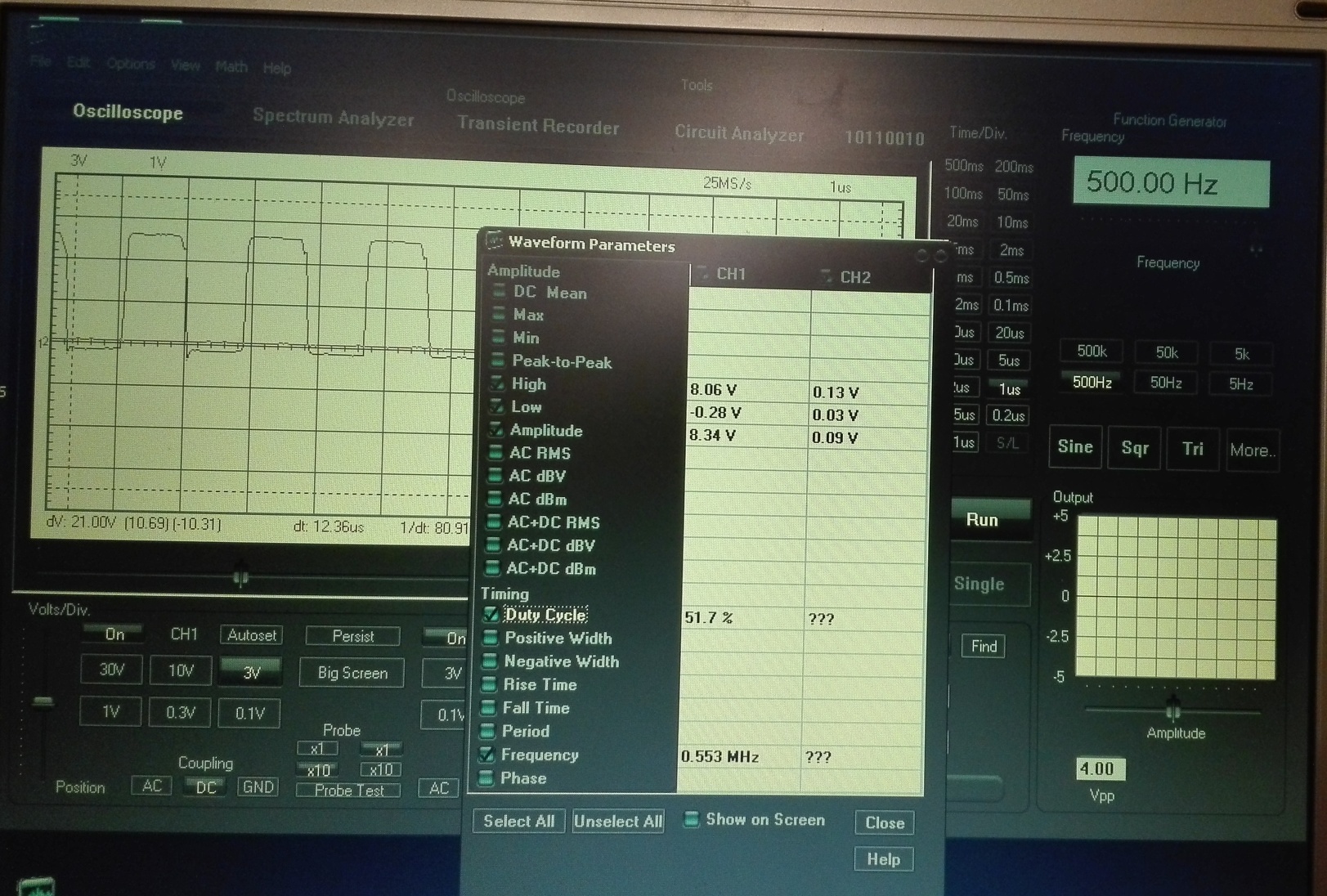 Tegnap a négyszögesített LC oszcillátort rákötöttem a 4066 osból csinált mixerre.