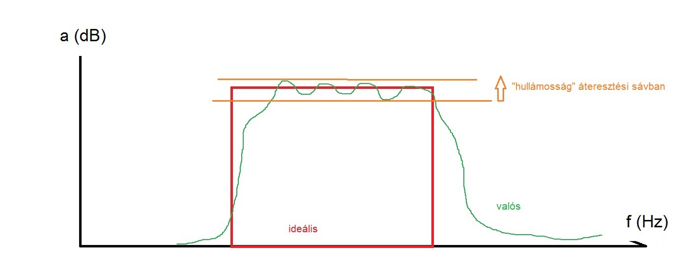Az áteresztő sávban mennyire egyenletes (vízszintes a freki/csillapítás görbe) )a frekvencia menete. Egy kis ábra erről.Ebbe még sok egyéb paraméteret is bel lehet szőni .