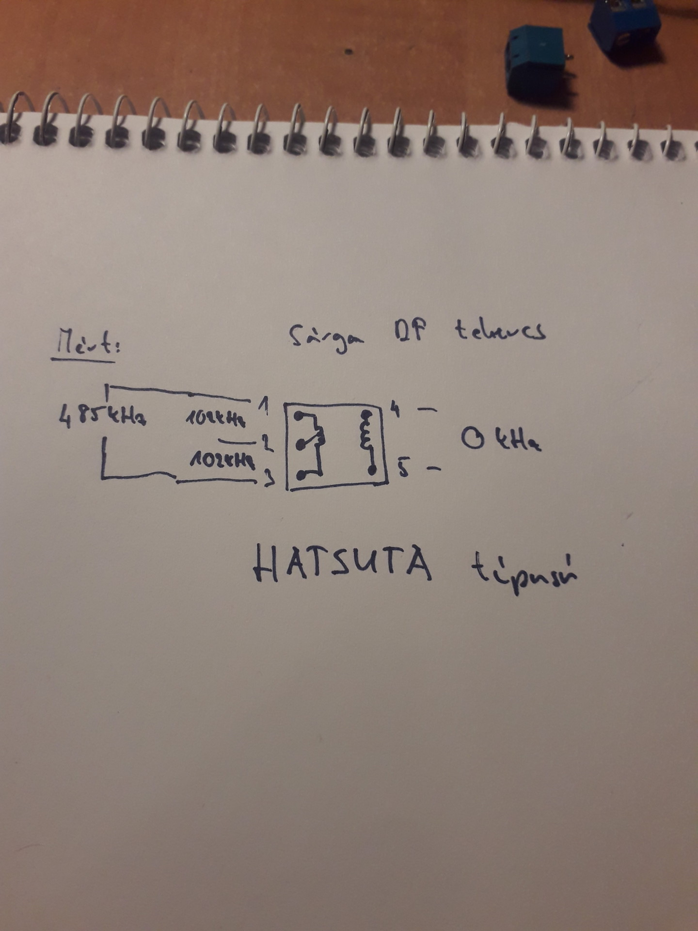 Lemértem. Csak egy egyszerű ábrát rajzoltam is. Az elágazott tekercsnél 485 kHz-t mértem. Az elágazott tekercsnél, a közös kivezetésnél 102 kHz-t?. A másik tekercs pedog 0 kHz.