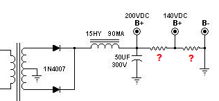 5 menet AWG18 huzalból (1 mm átmérő), 3/8" belső átmérőre (9,5 mm átmérő), 1" hosszon (25,4 mm) T1 3:1 áttételű trafó (valamilyen mikrofontrafóra céloz), szerintem kiváltható egy munkaellenállással, amit úgy oldhatsz meg, hogy a trafót egyszerűen kihagyod, és a rövidrezárt helyéről egy kondival csatolsz tovább. A 150 k helyére egy 100 nF kondival. A T2 egy kimenő trafó, ha E(P)CL86 -ot használsz második csőnek, ahhoz létezik kimenő trafó.