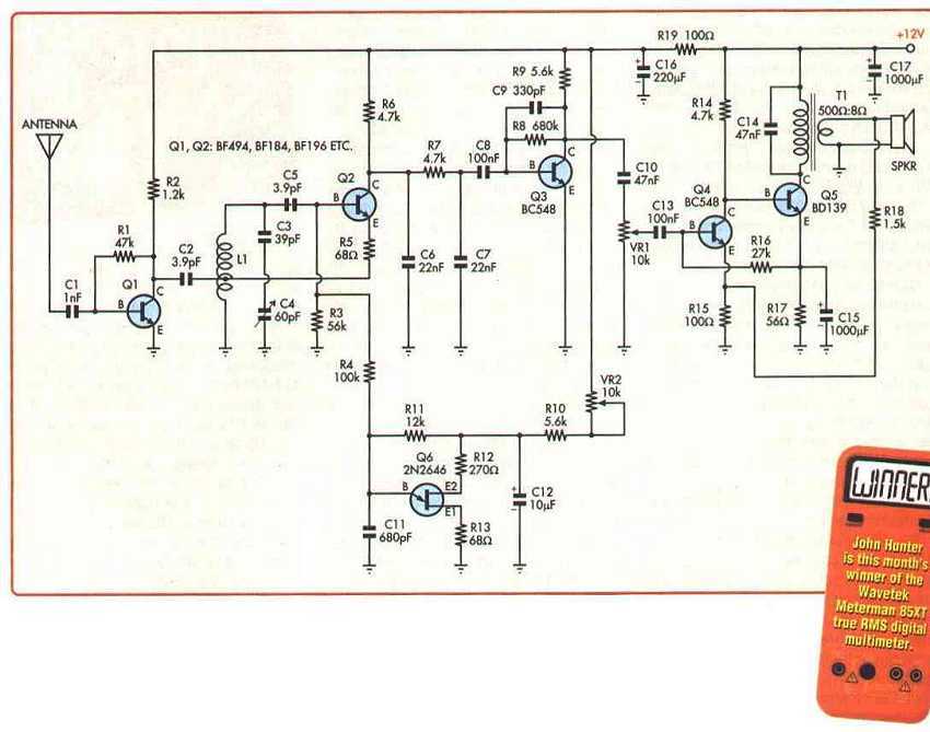 Rosszul emlékeztem megint. Az a kapcsolás nem FET-es volt, lehet, hogy az a kapcsolás FM-re is jobb lenne, mint amit építettem, csak az UJT miatt idegenkedtem tőle, azért nem építettem meg, de az UJT-s részt kipróbálhatom a FET-es AM rádiómban is, a FET G2-n, ott úgysincs most semmi, csak egy sima osztó. valami sok megohmos potenciométerrel próbálkozhatnék, odavinni a G2-re a fűrészjelet,hátha szupreg lesz belőle?