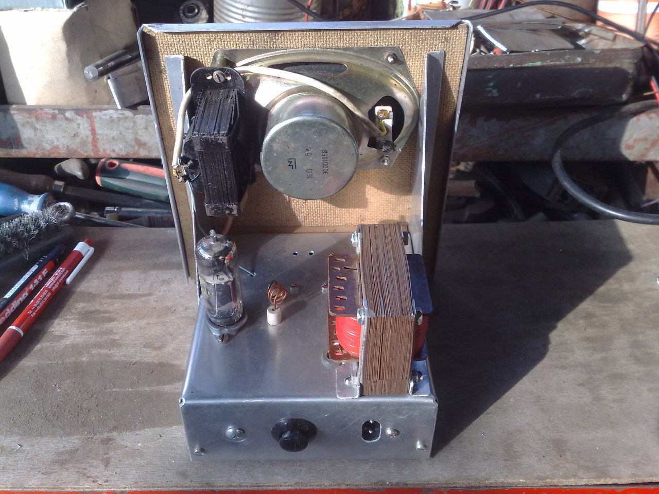Nekem csak ilyen hibas radioim vannak aminek a dobozat es alkatreszeit fel tudom hasznalni,peldaul ez egy kis taskaradio,hibas,javittani pedik nem erdemes mert csak AM,fel lehet hasznalni benne a HF erositot,a hangszorot es meg van a skala mechanika is,igy csak az RF reszet kell megepiteni