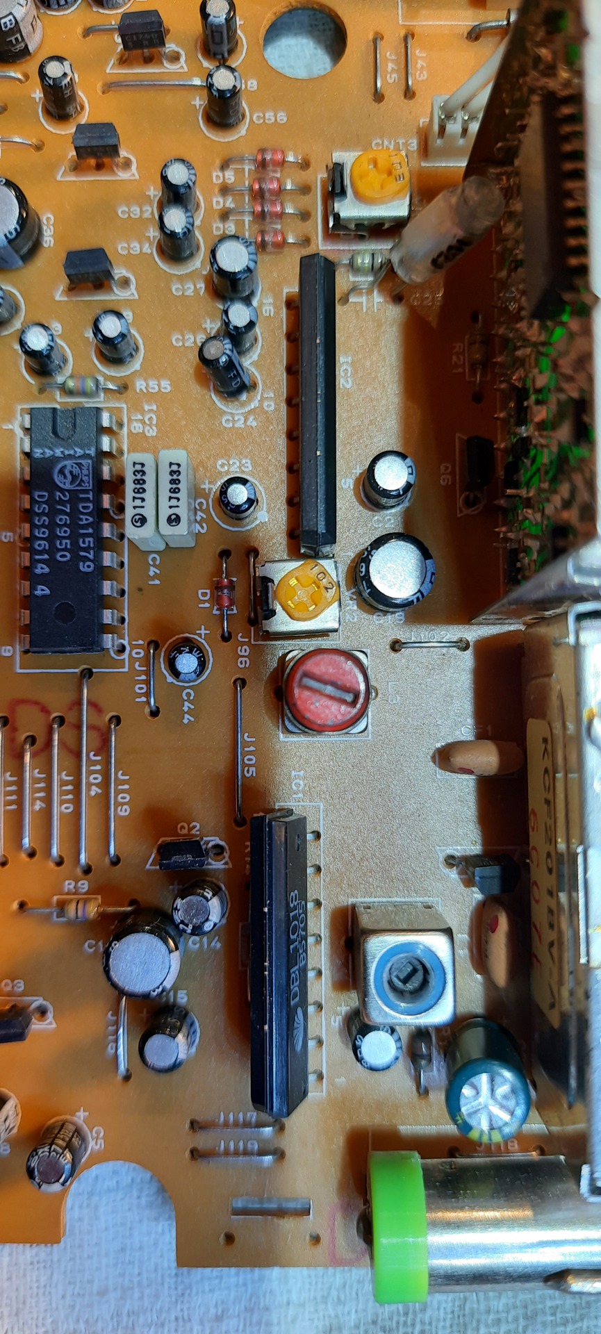 Egyenlőre az én tudásommal addig jutottam hogy a három IC tápfesz és föld megvan,és néhány elektrolit kondenzátort már kicseréltem a tuner környékén,finoman megmozdítottam oda-vissza a trimmereket(volt hogy ez már segített).