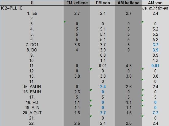 A Tuner már működik, forrasztás hiba volt, és Tuner IC nem kapott tápot, de sajna PLL még mindig nem jó. Lemértem IC1(Tuner) és IC2 (PLL IC) lábain levő feszt: mellékletbe tettem az eredményt. Továbbra se kapcsol át AM-be, de ha a Potival keresek FM-be, akkor AM alapzajt hallok, de FM-t fogok.