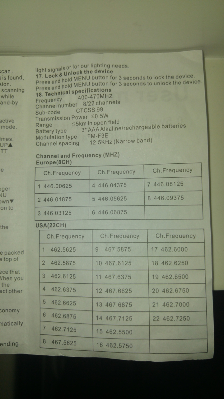 Most próbálom. Annyi van hogy a 22csatorna alatti 99 et OFF ra lehet állitani. De ettől még ugyan úgy lehet 22 ből bármelyiket választani. Szóval azt nem értem, hogy az USA 22 (462) és EU 8 (446) csatornák közt hogy lehet váltani? Mivel nem irja a frekit, honnan tudom hogy nem e a 462.xxx freikin vagyok.