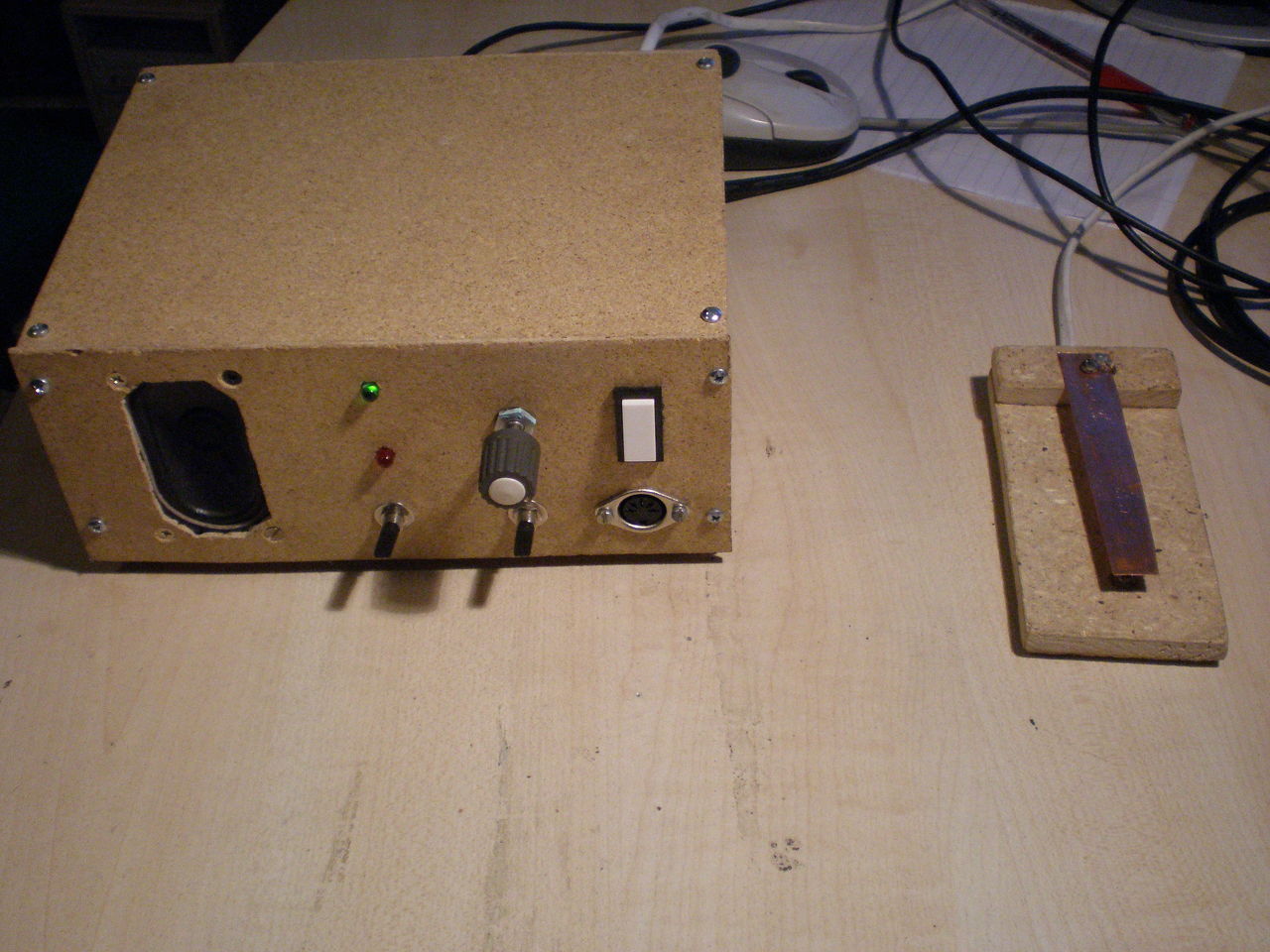 Elkészültem a morze gyakorlómmal. Még hiányzik a játékport kábel amivel össze lehet majd kötni a számítógéppel, ezáltal a gépen futó program az általam ,,leadott" jeleket visszaalakítja betűkké, így tudom hol mit rontottam. Egy másik kábellel össze lehet kötni a számítógép hangkimenetével, a program által adott és általam vett jeleket is ezen a készüléken keresztül tudom megfigyelni. Számítógép nélkül egyszerű oszcillátorkén működik. A CWplayer nevű programot használom hozzá.