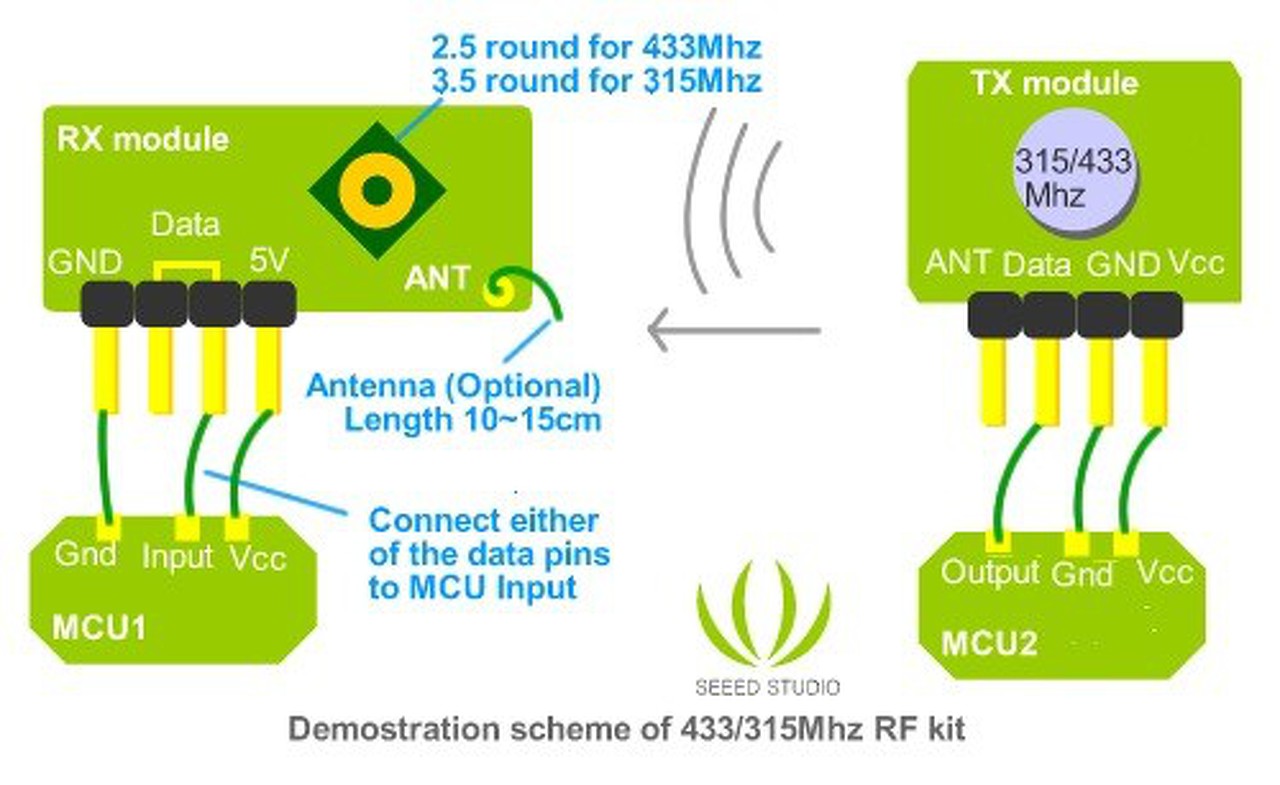Ez csak a rádiócsatorna 1 bit továbbitására alkalmas. Ki kell egészíteni mikrokontrollerrel