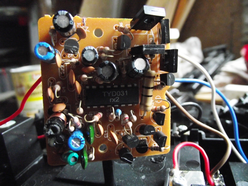 Talán tudtok segíteni, nem boldogulok. Van egy 27MHz-es táv. autó TAIYO 93-R és T ic párossal. A google sajnos nem talál semmilyen datasheetet róluk. Ha jól tudom ez az ic 5 kimenetes, ebből 4 tökéletesen működik. Előre, hátra, jobbra és balra megy. Van a távkapcson egy 5. gomb, amire az autó teteje kellene felnyíljon és vizet spricceljen egy motor meg némi fogaskerék segítségével. A távkapcs gombja működik a jelet is néztem szkóppal. Az ic lába, ami ezt a részt vezérli o-án van, gombnyomás hatására nem történik semmi, 0-án van akkor is (illetve egy nagyon minimális 3-4mV-os változás van). A láb egy ellenálláson keresztül egy tranzisztor bázisára megy, a tranzisztor emittere +tápon van (6V), a collectora a motor egyik felén, a motor másik fele GND. A motor működik a tranzisztor működik, az ellenállás jó. Szerintetek az ic-vel lehet valami baj (kuka), vagy valami külső alkatrész tartja 0-án ezt a kimenetet? Esetleg az ic párosról tudtok valami elérhetőséget küldeni? Előre is köszönöm. tshiky