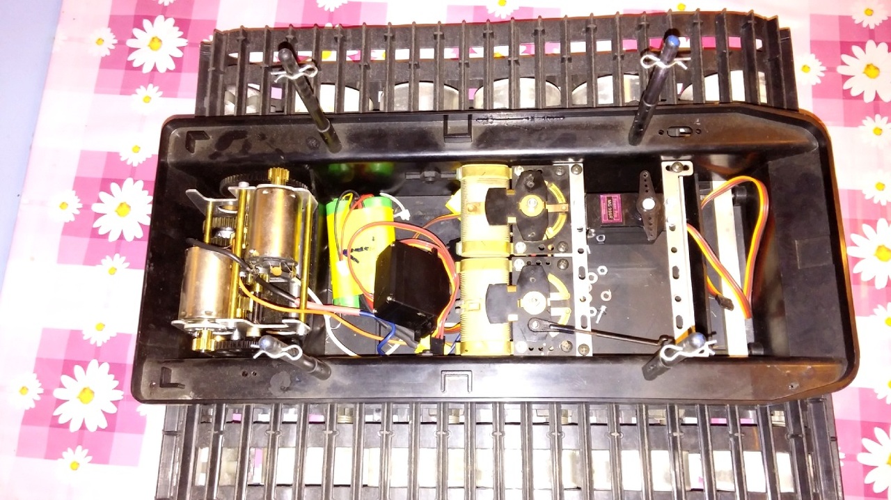 Sziasztok! Érdekes feladatot találtam ki magamnak. Van egy 1:8-as méretarányú RC tankom. Nem harci példány, hanem egy Monster Tank. Tettem be képet róla. Nagyon szuper kis gép, Van benne két erős kefés motor a jobb és bal lánctalp meghajtására. Ezeket a motorokat két huzalpotméter segítségével "elvileg" teljes tartományban tudom szabályozni mindkét irányba. Az egyik poti mindkét motor fordulatszámát szabályozza egyszerre. Ez a tank sebességét határozza meg. Ráadásul mindkét irányba elmozdítható a potméter, ezért előre-hátra működik. A másik huzalpoti attól függően, hogy merre mozdul ki az érintkező, vagy a jobb vagy a bal oldali motort lassítja a gép fordulása érdekében. Akár teljesen is megáll a motor, ha kell, így sarkon is tud fordulni a tank. Ennyit a működéséről, hogy el tudjam mondani a problémám.
